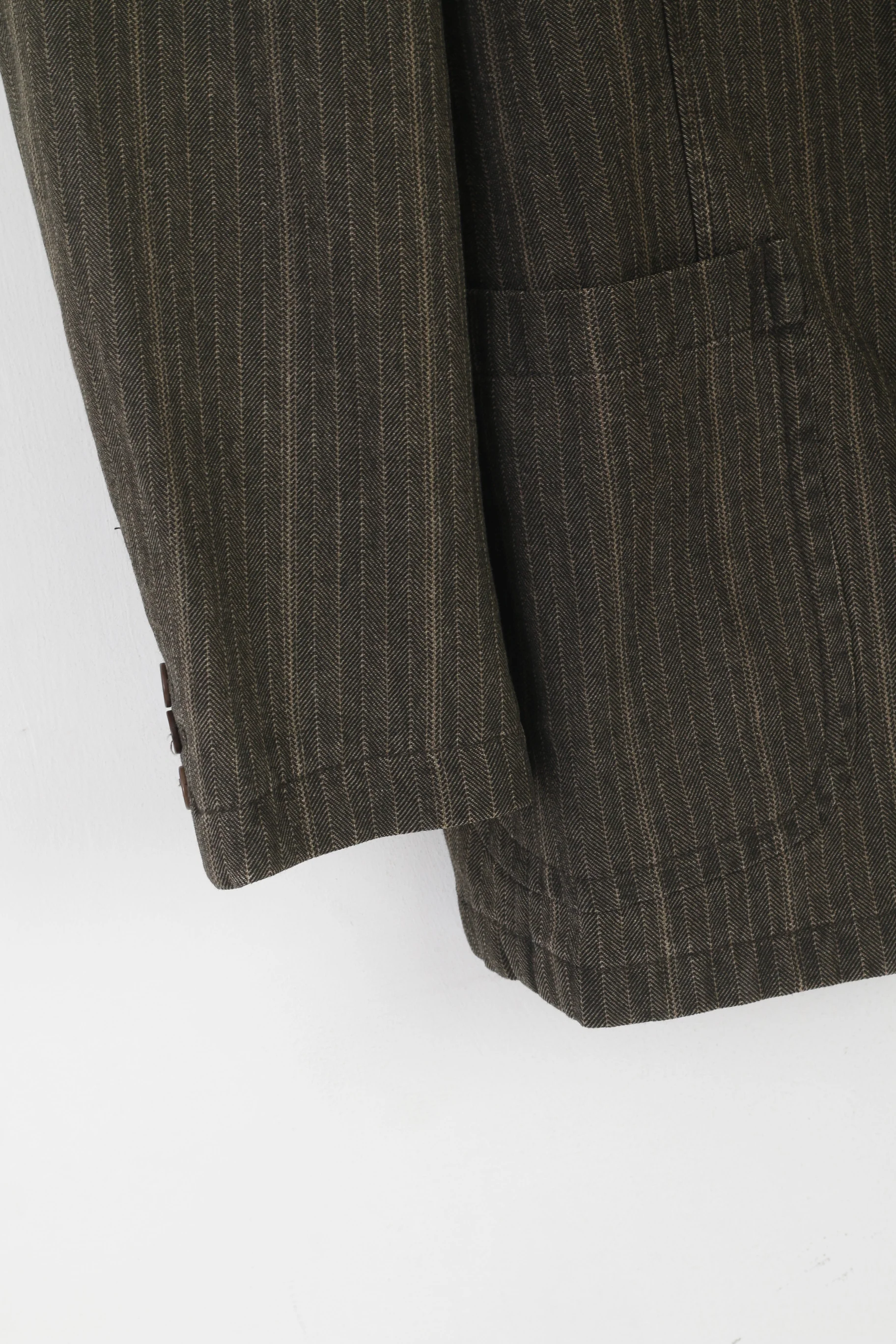 Stones Men XL Blazer Brown Cotton Denim Striped Vintage Single Breasted Jacket