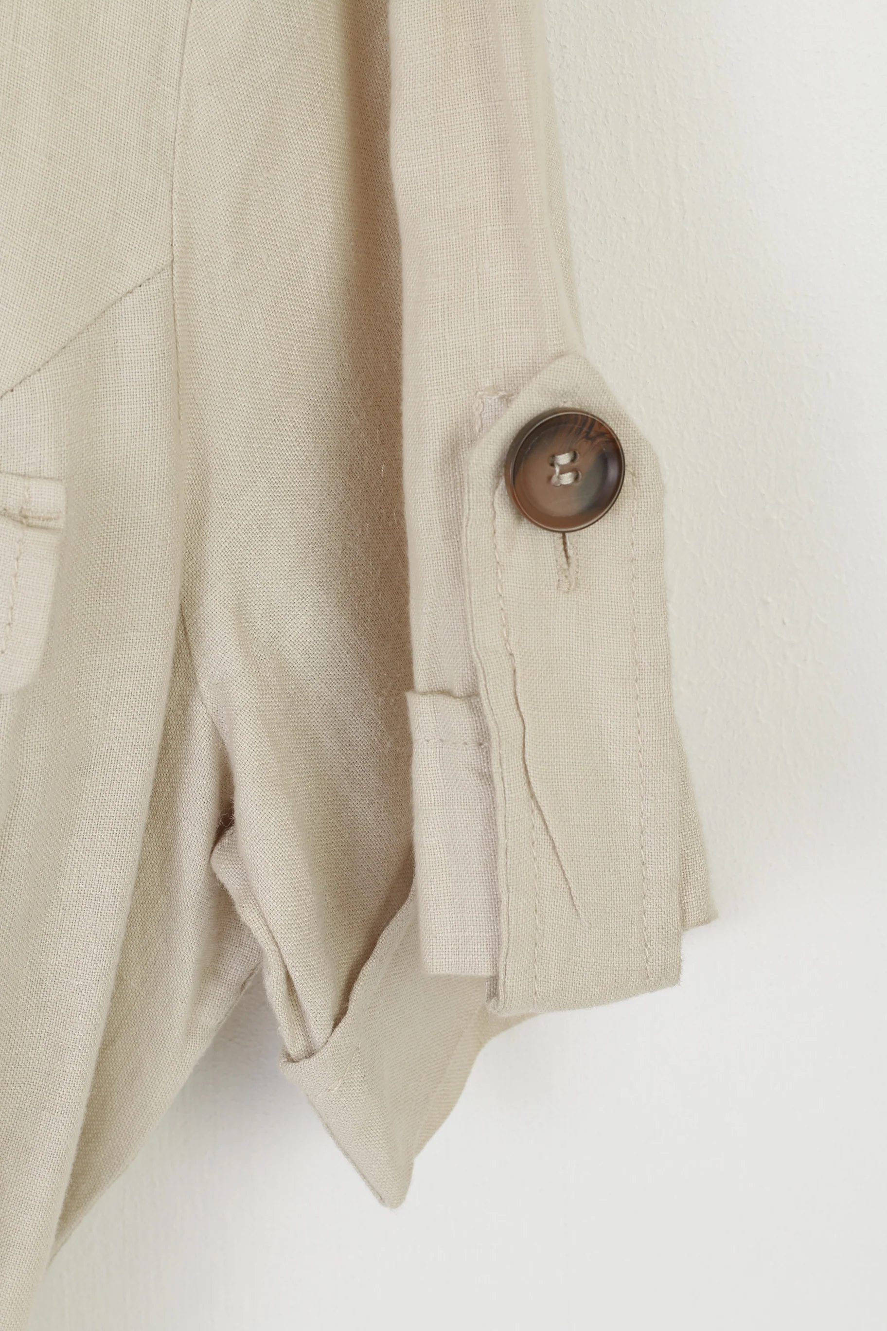 George MODA Women 18 46 XL Casual Shirt Beige 100% Linen Blouse Belted Tunic