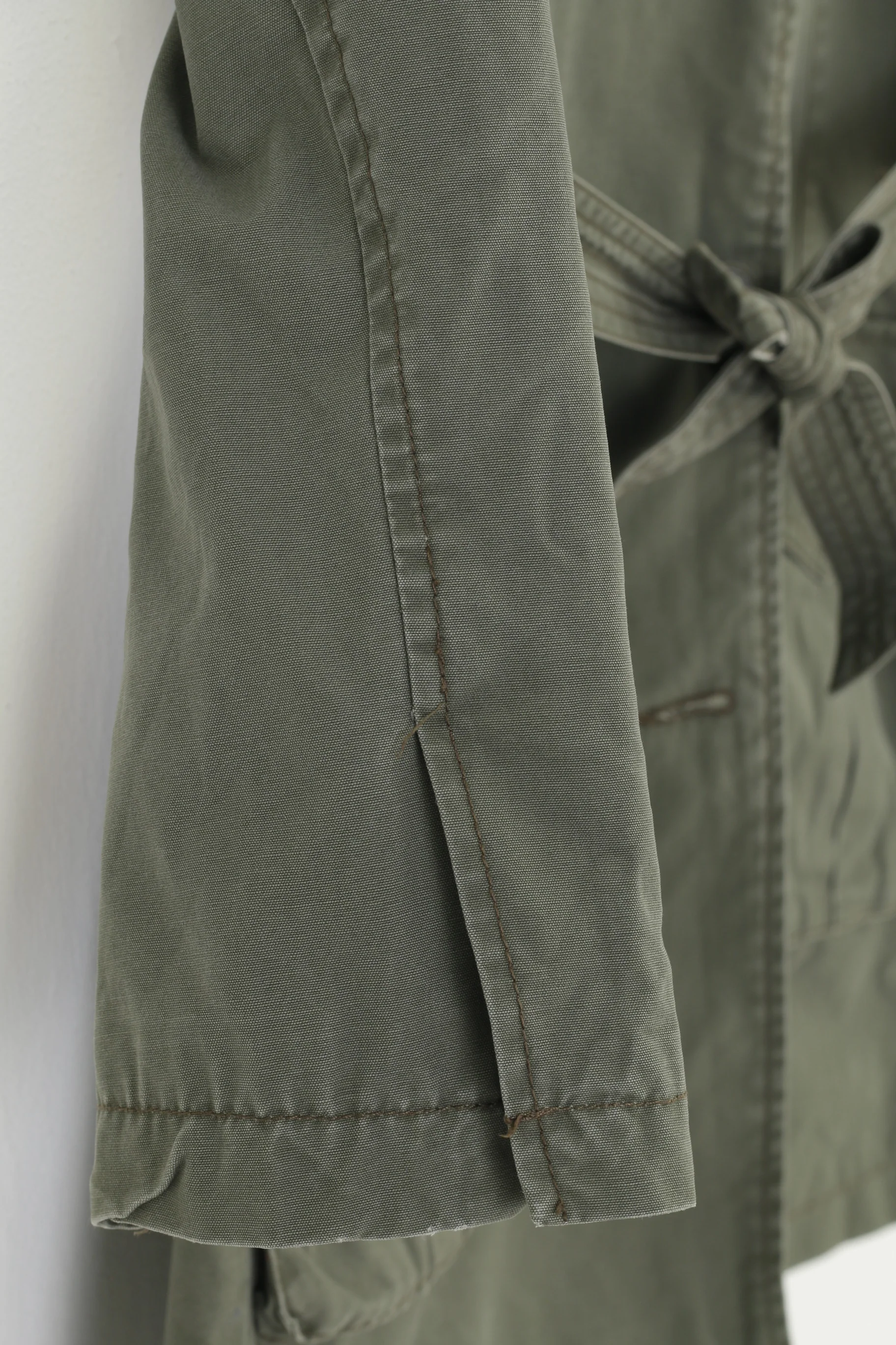 H&M Girls 152 cm 11 Age Coat Green Cotton Single Breasted Belt Pockets Collar Vintage Jacket