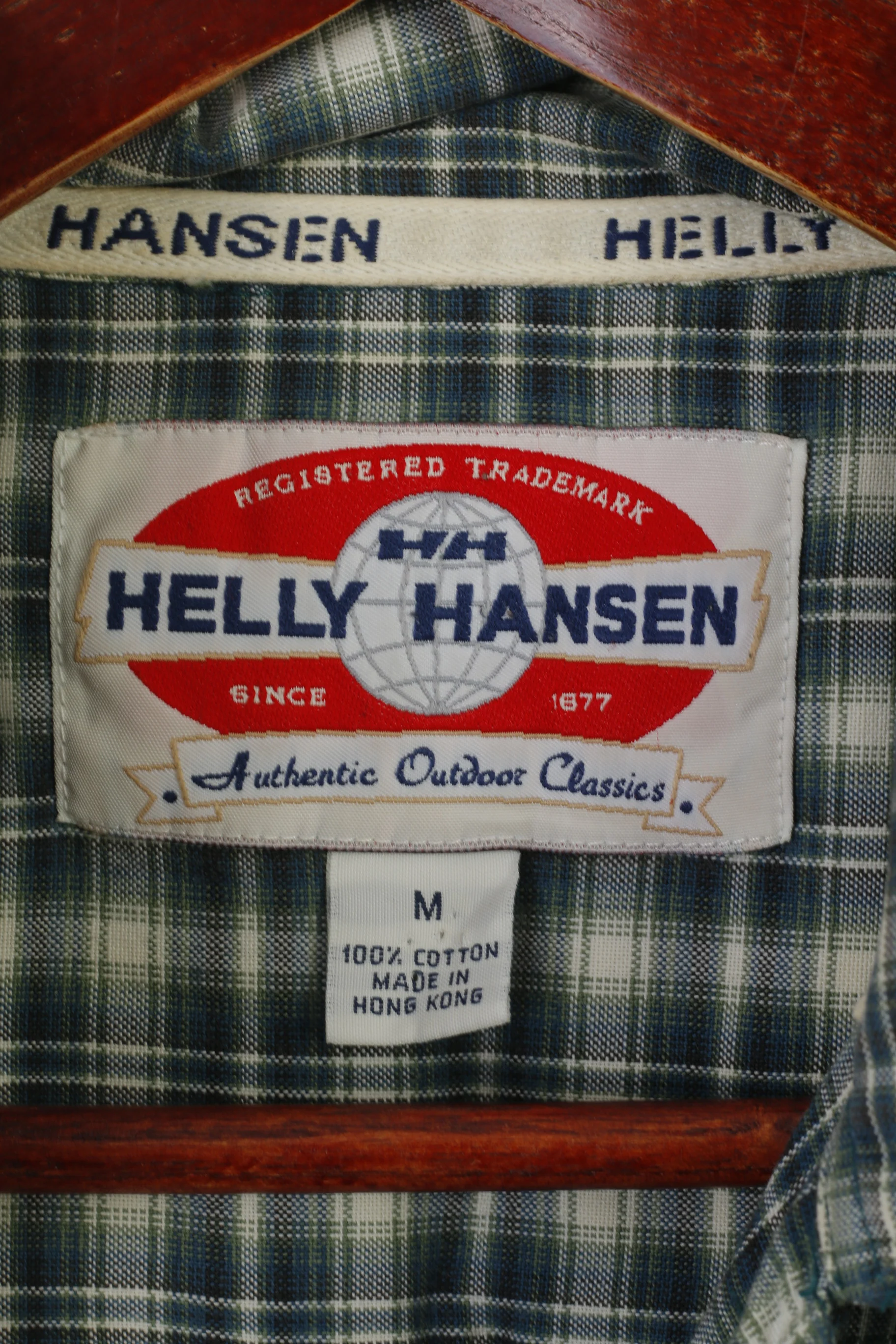 Helly Hansen Men M Casual Shirt Green Check Cotton Outdoor Vintage Top