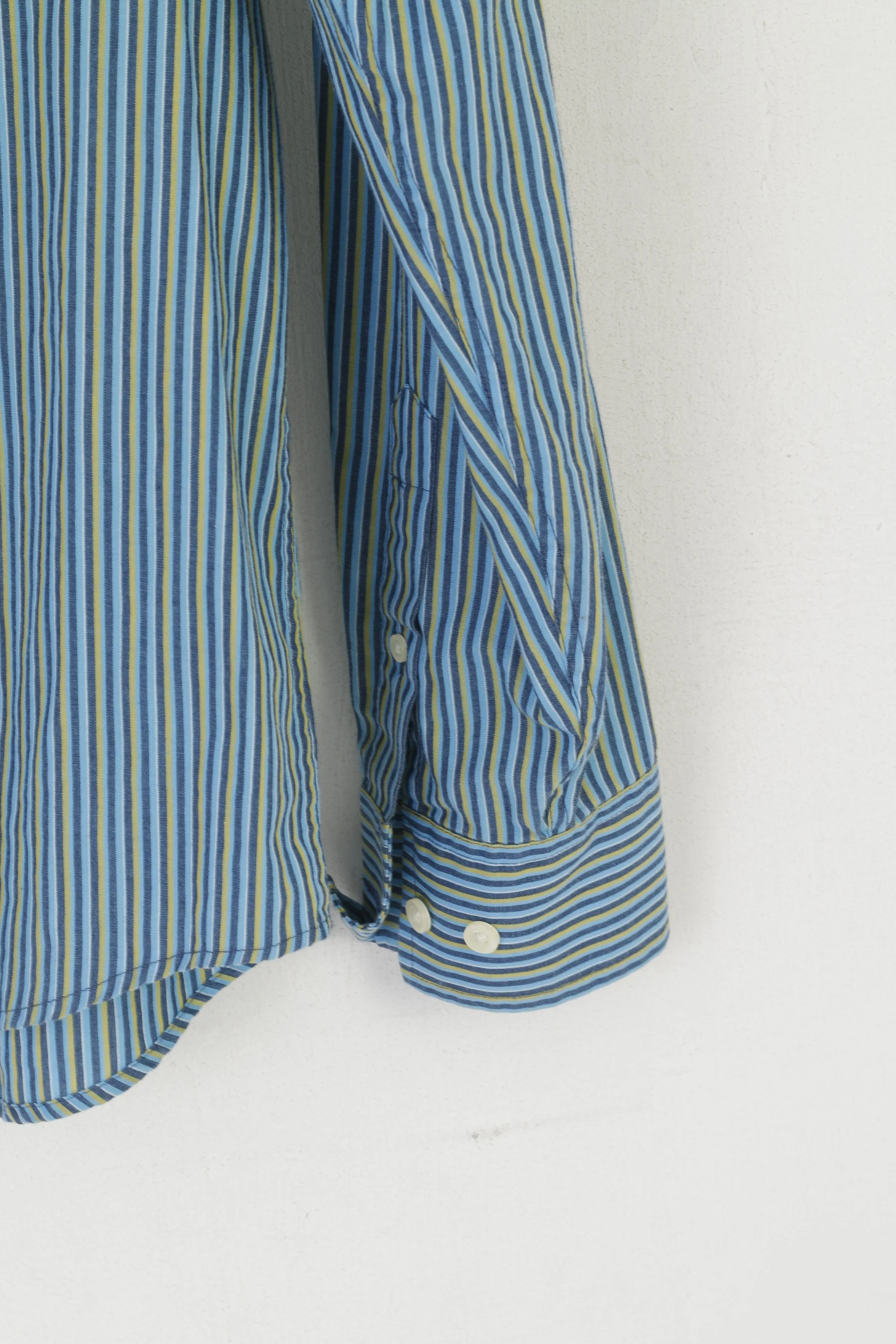 Penguin Men M Casual Shirt Blue Cotton Striped Heritage Slim Fit Long Sleeve Top